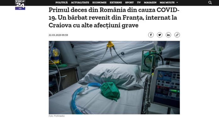 Titlul știrii prezentate de cei de la Digi24 vorbește despre un deces din cauza coronavirusului.