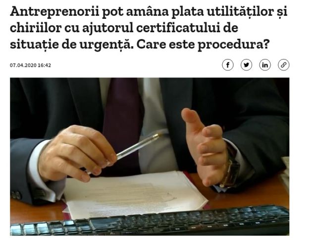 Intitulat “Antreprenorii pot amâna plata utilităților și chiriilor cu ajutorul certificatului de situație de urgență. Care e procedura“, articolul este abia la final marcat ca fiind ”susținut de PNL”. Practic, vorbim de publicitate politică ascunsă pe cât posibil sub forma unei știri.