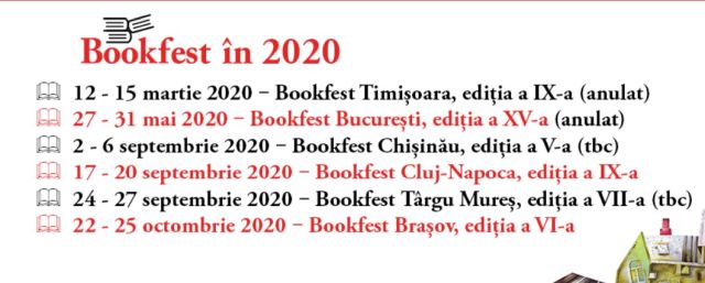 „Înţelegem pe deplin motivele care stau la baza acestei decizii şi ne exprimăm dorinţa ca această criză sanitară să se încheie cât mai curând. Având în vedere această situaţie, precum şi preocuparea legitimă pentru integritatea fizică a vizitatorilor şi expozanţilor, ne vedem nevoiţi să anulăm cea de-a XV-a ediţie a Salonului Internaţional de Carte Bookfest, programată în perioada 27-31 mai 2020”, se arată în anunţul AER publicat pe Facebook, conform News.ro.