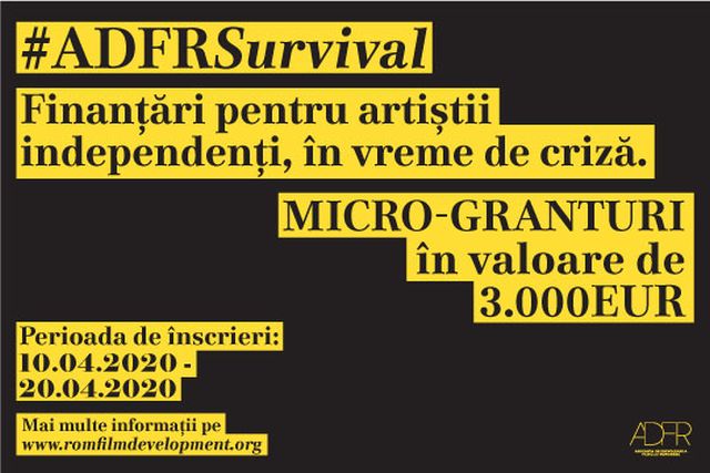 Micro-granturile #ADFRSurvival însumează o valoare totală de 3000 de euro și se adresează reprezentanților din industria cinematografice, cu vârsta cuprinsă între 23 și 35 ani, din departamentele imagine, regie, scenaristică, scenografie și costume și actorilor independenți (actori cu vârste cuprinse între 22 și 40 ani, care au avut cel puțin o colaborare în cinema, în ultimele 12 luni). Pentru fiecare categorie se vor acorda câte trei micro-granturi a câte 500 Euro fiecare.