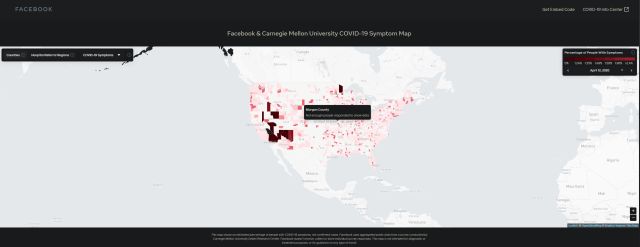 Facebook, în colaborare cu universitatea Carnegie Mellon din Pittsburgh, a realizat o hartă cu persoanele care prezintă simptome ale infectării cu coronavirus. Harta le poate servi autorităților din SUA pentru a-și da seama unde există grupuri mari de oameni cu COVID-19 și unde sunt localizate posibilele zone focar.