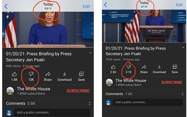Cei de la Google, proprietari de Youtube, sunt și mai zvelți în dragostea față de mărețul lider. Cum videoclipurile postate de Casa Albă au muuult mai multe dislike-uri decât like-uri, așa că s-au grăbit iutubacii să rezolve problema. Și șterg la greu.