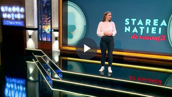 Emisiunea va fi prezentată de Ştefania Cîrcu, care s-a alăturat echipei Starea naţiei în urmă cu un an. Ştefania are 24 de ani, este actriţă de teatru şi film, a absolvit Facultatea de Ştiinţe Politice, Universitatea Bucureşti, şi Universitatea Naţională de Artă Teatrală şi Cinematografică I.L. Caragiale, Bucureşti, Arta Actorului. Este cunoscută în cinematografie pentru rolul din “Mia îşi ratează răzbunarea” (2020), pentru cel din spectacolul de teatru “Neguţătorul din Veneţia” (2019), pus în scenă la Teatrul Naţional “I.L. Caragiale” Bucureşti, dar şi pentru intervenţiile alături de Dragoş Pătraru din emisiunea Starea Naţiei.